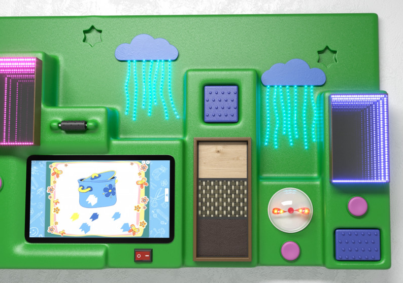 Пластиковая интерактивная панель подходит для развития детей с ограниченными возможностями, раннего развития детей, для развития сенсомоторных навыков, речи, слуха. Также такой комплекс прекрасно подойдет для стабилизации эмоций у детей с аутизмом.