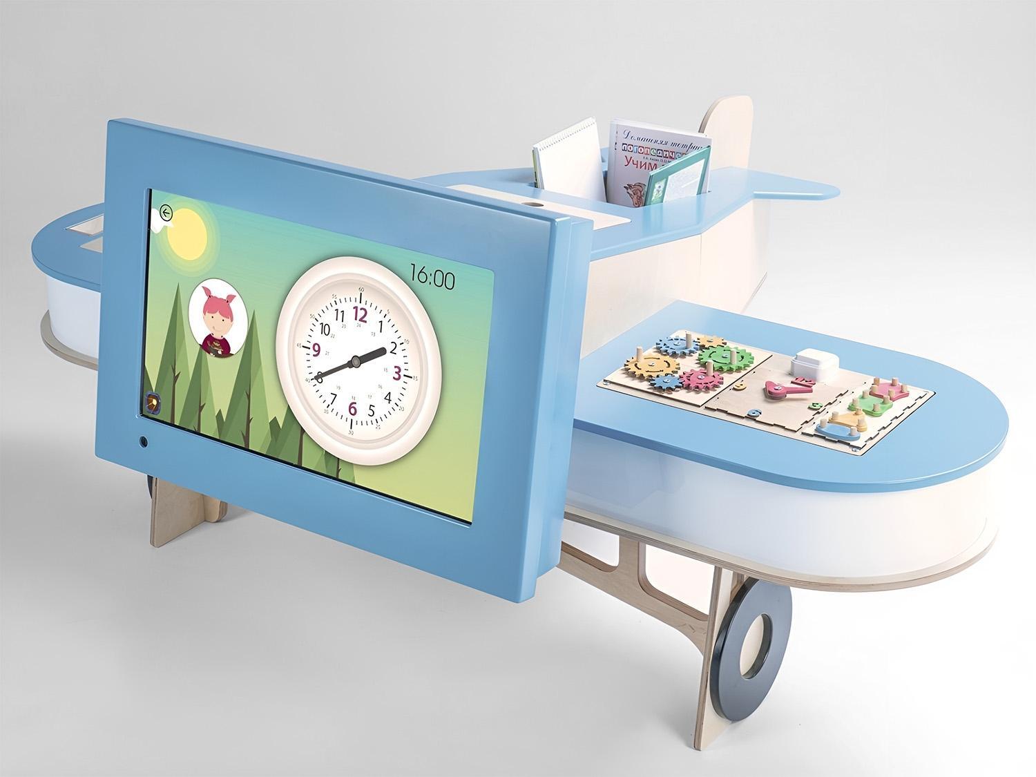 Методический интерактивный комплекс «Самолёт» представляет собой игровое пространство с четырьмя зонами. Конструирование, занятия на интерактивной панели, световая панель для рисования песком и сенсорный комплект Монтессори.