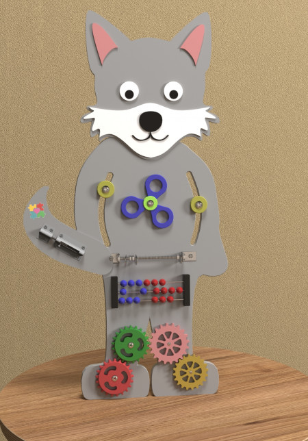 Бизиборд интересен как малышам, так и детям постарше. Благодаря развивающей игрушке ребёнок быстрее познакомиться и освоит мир вокруг себя. Познакомится с миром животных, так как изображен в виде волка. Недорогой бизиборд можно купить для домашнего использования, для детских центров, детских садов, для ресторанов и клиник.