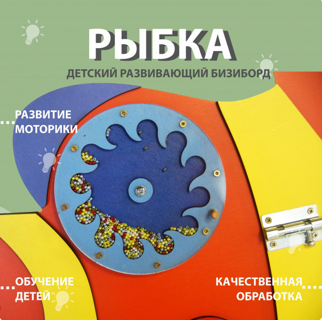Многофункциональная доска для детей, которая будет интересна как малышам, так и детям постарше. Благодаря развивающей игрушке ребёнок быстрее познакомится и освоит мир вокруг себя. Форма и изображение рыбки познакомит малыша с подводным миром. Доска безопасна: не имеет острых углов и не оставляет заусенцы на коже малыша. Бизиборд можно использовать для дома, для детских центров, детских садов, для ресторанов и клиник.