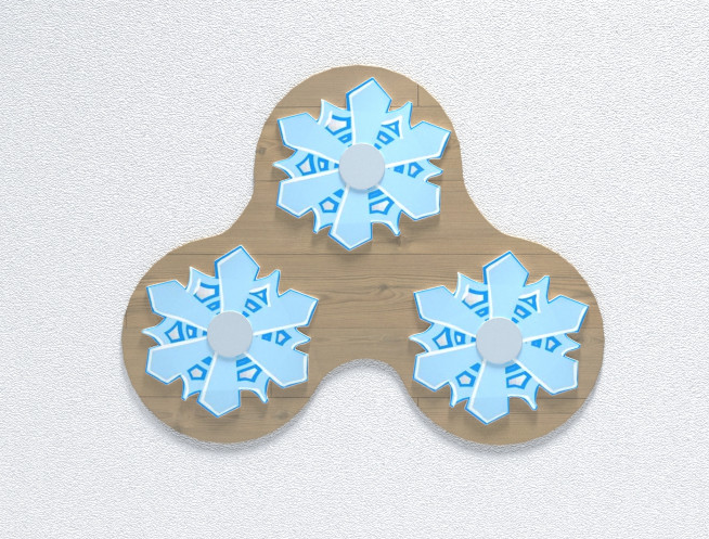 Настенная панель в виде снежинки привлечёт детское внимание простыми формами; с её помощью можно рассказать ребёнку о снежинках в отдельности и снеге в целом.