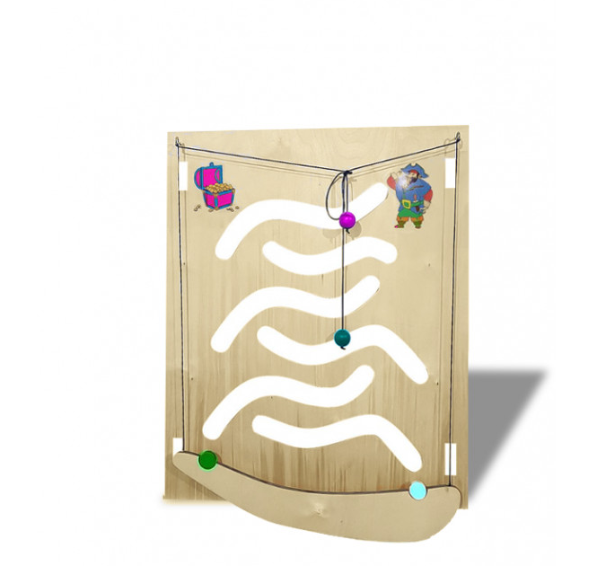 Тактильно-развивающая панель-лабиринт на тему охоты за сокровищами - это увлекательная игра, выполненное из качественных материалов, которая не оставляет зацепок в детских ручках. Это большое поле с изображением пирата и сундука с сокровищами. На панели есть вырезанные линии, напоминающие волны. В комплекте есть еще лодка и два шарика на веревке. В ней необходимо ловкими и точными движениями за ниточки управлять лодкой, и довести ее до финиша, не уронив шарик. Панель заинтересует как маленьких детей, так и постарше, а родителям поможет сохранить дом в целости и сохранности. Она подойдет для домашнего использования и для специальных учреждений.