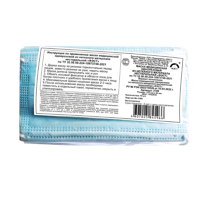 Маска медицинская нестерильная одноразовая (10 штук) - fgospostavki.ru - Радужный