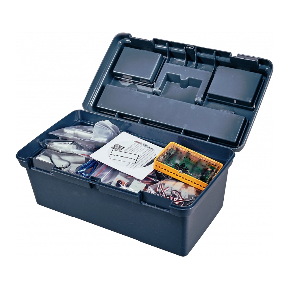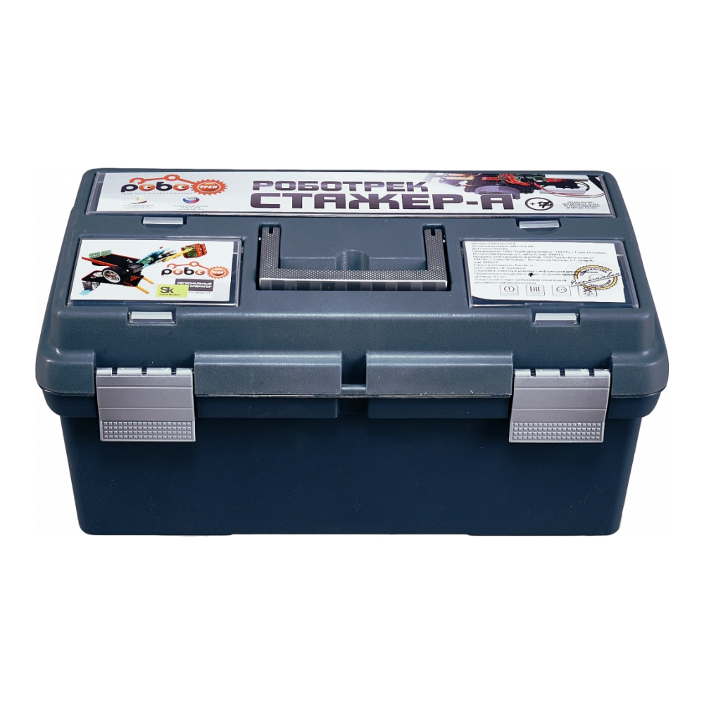 Набор Роботрек «СТАЖЕР А» поставляется в удобном кейсе для хранения, внутри которого детали рассортированы по ячейкам.
